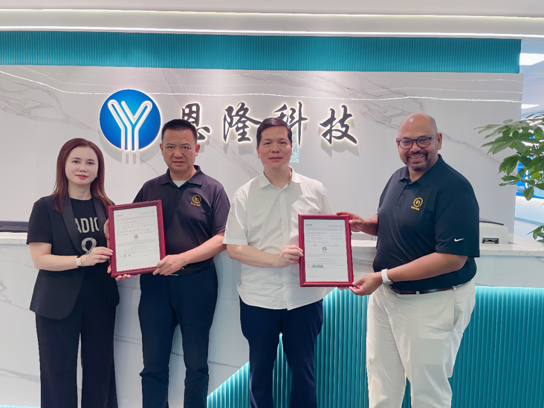 The certificate presentation ceremony was held at the Shenzhen factory of YLI Electronics. Mr. Cen Fuyu, General Manager of YLI Electronics, Ms. Cen Miaoting, Deputy General Manager, Mr. Vinu Abraham, Vice President of Intertek North America's Construction Engineering Business Line, and Mr. Huang Qiang, General Manager of Intertek Greater China's Construction Engineering Division attended the ceremony.