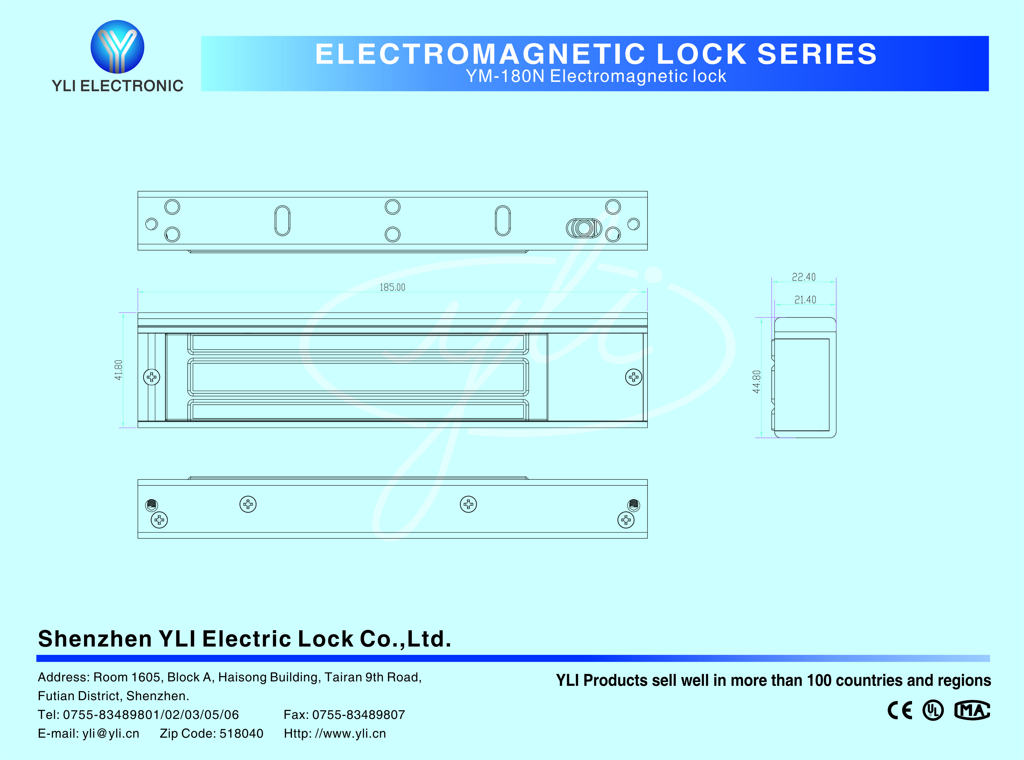 YM-180N Single door magnetic lock is designed for wooden door, metal door, glass door and fireproof door. YLl magnetic lock cores are produced with robotic laser welding technology , providing 2 to 3 times stronger impact resistance and torsional resistance than conventional production processes . The surface is treated with the internationally leading electroplating process and the lock itself has passed the 240-hour salt spray test in the national laboratory, achieving excellent performance of anti-oxidation, anti-rust and anti-corrosion.Our company offers a complete range of brackets for different locks.
