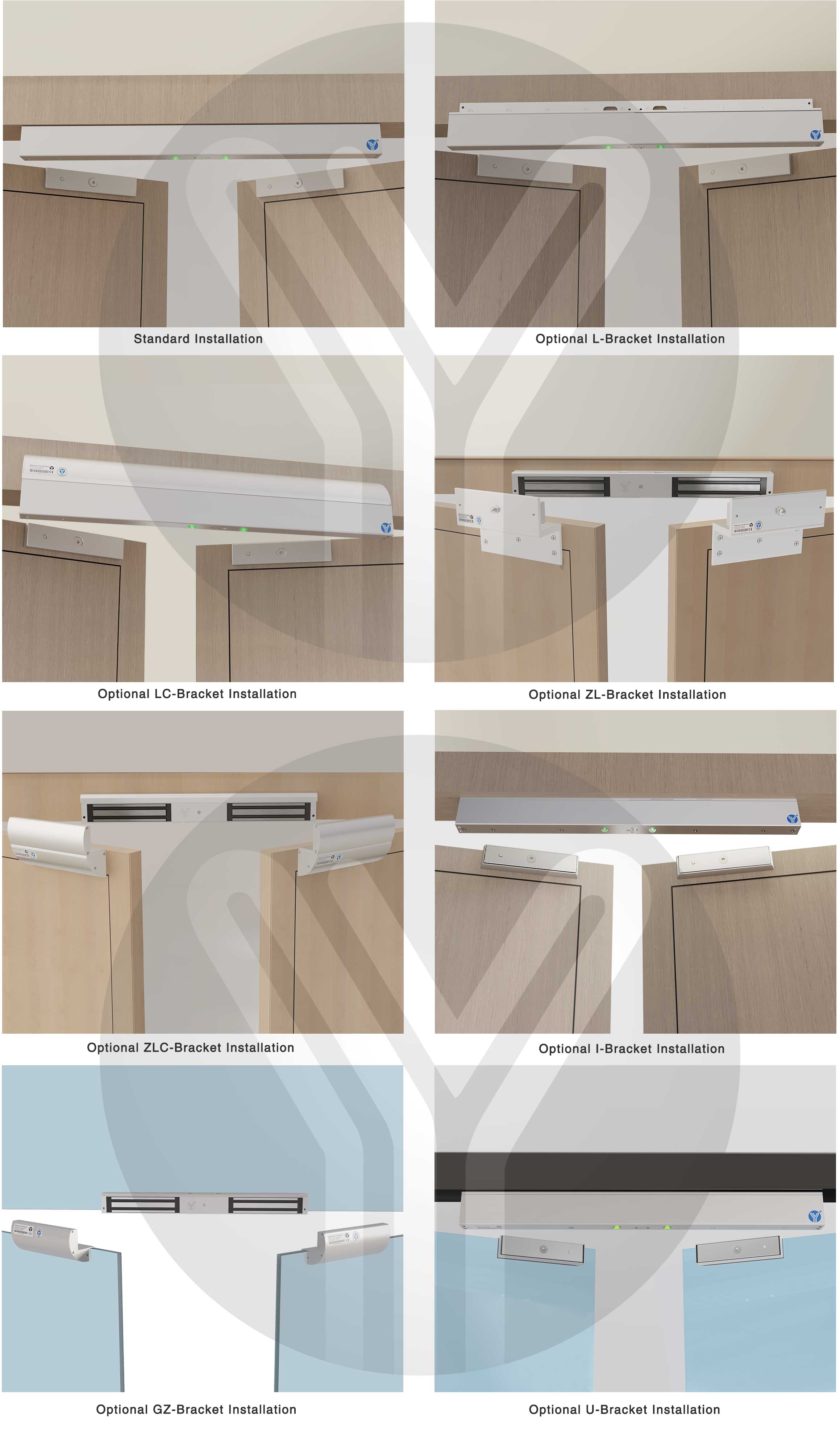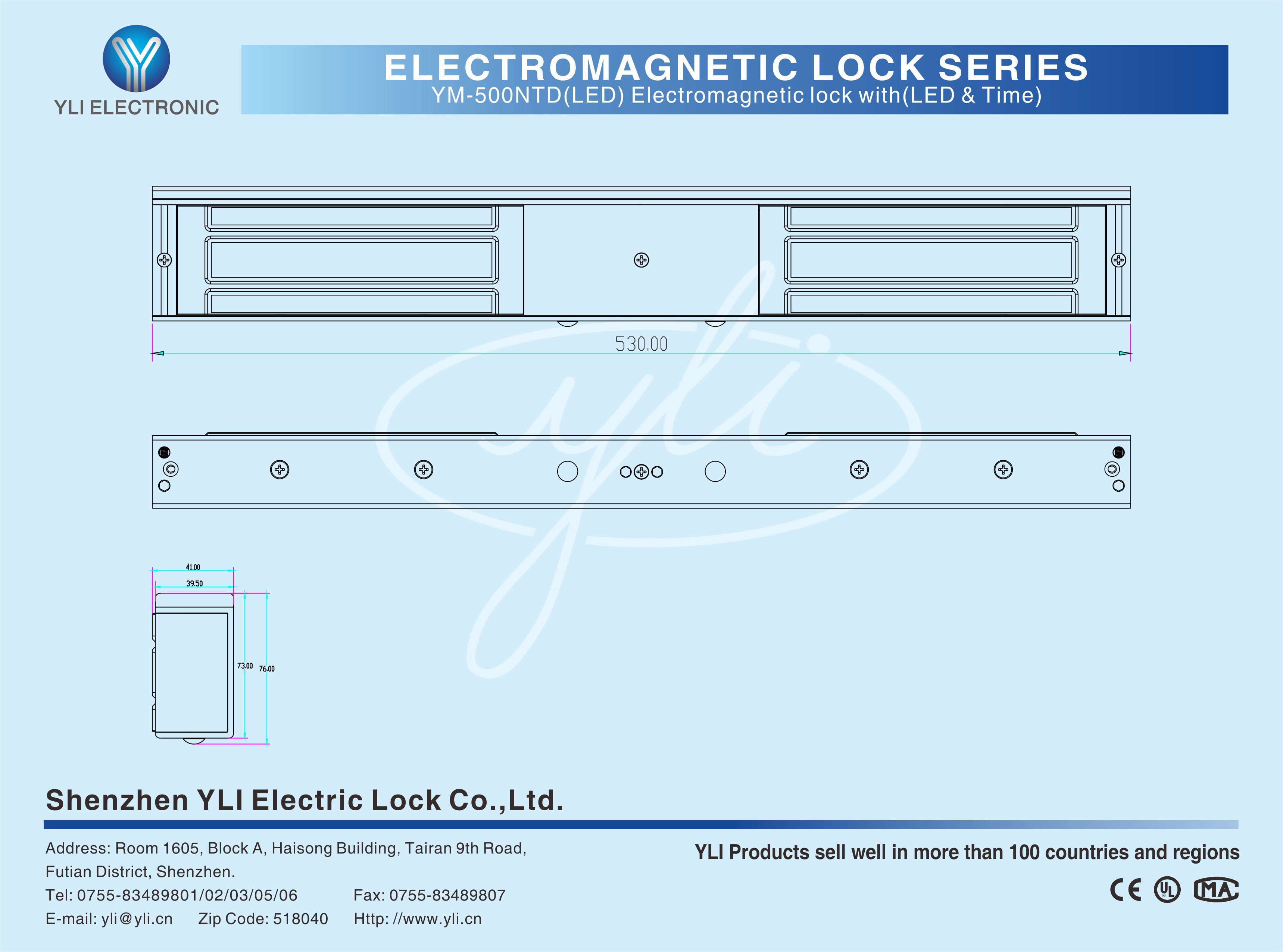 YM-500NTD(LED) Double door magnetic lock is designed for wooden door, meta了door, glass door and fireproof door. lt has an adjustable time delay function of 0/3/6/9 seconds. There is a set of lock status signal (NO/NC/COM) output contacts, which provides real-time feedback for the access control system. The lock body is equipped with a large LED light . The green light indicates unlocking, and the red light indicates locking. YLl magnetic lock cores are produced with robotic laser welding technology.providing 2 to 3 times stronger impact resistance and torsional resistance than conventional production processes. The surface is treated with the internationally leading electroplating process and the lock itself has passed the 240-hour salt spray test in the national laboratory, achieving excellent performance of anti-oxidation anti-rust and anti-corrosion. Our company offers a complete range of brackets for different locks.