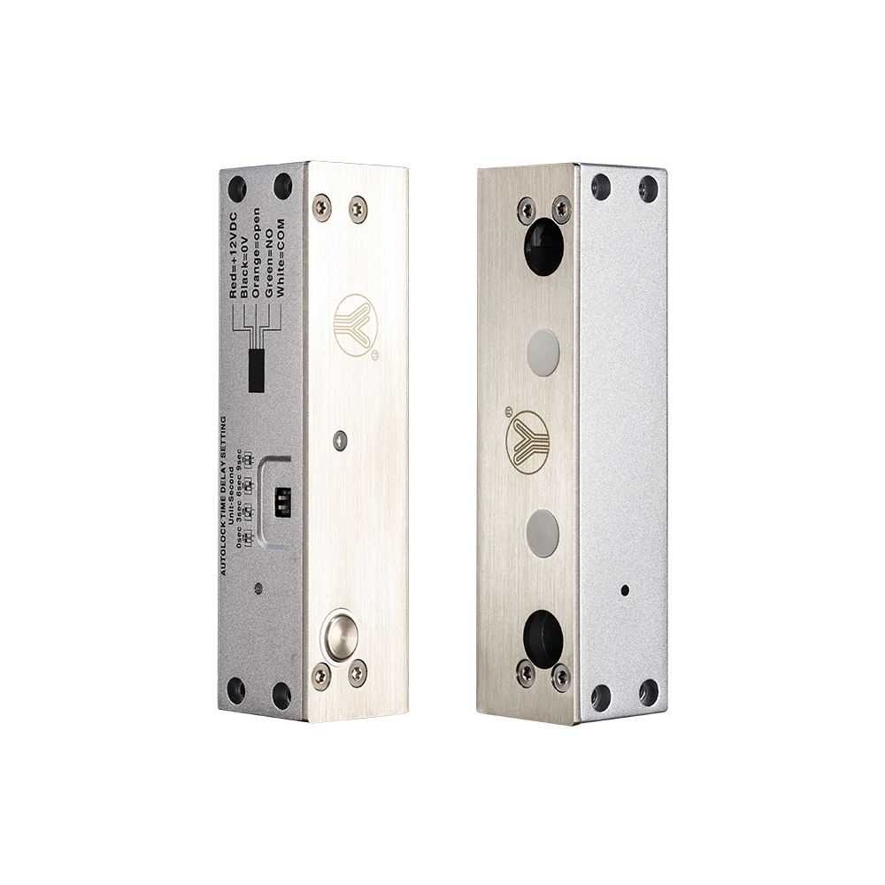 YB-500U(LED)是一款全金屬結(jié)構(gòu)的上下無框玻璃門專用智能型電插鎖,鎖舌采用整體式304不銹鋼實(shí)芯棒材經(jīng)CNC車床精工而成,可承受1000kg靜態(tài)沖擊力,鎖舌插出后防撬功能設(shè)計(jì),連動(dòng)部件全部采用金屬結(jié)構(gòu),在60℃高溫及零下30℃嚴(yán)寒的惡劣環(huán)境可正常使用, 專業(yè)耐用型電磁閥,特殊光電控制超低溫及超低功耗設(shè)計(jì)。防入侵電路及智能邏輯電路設(shè)計(jì)等多功能綜合于一體,是一款適合(10~12mm)厚度的上下無框玻璃門及高安保需求場(chǎng)所安裝使用。