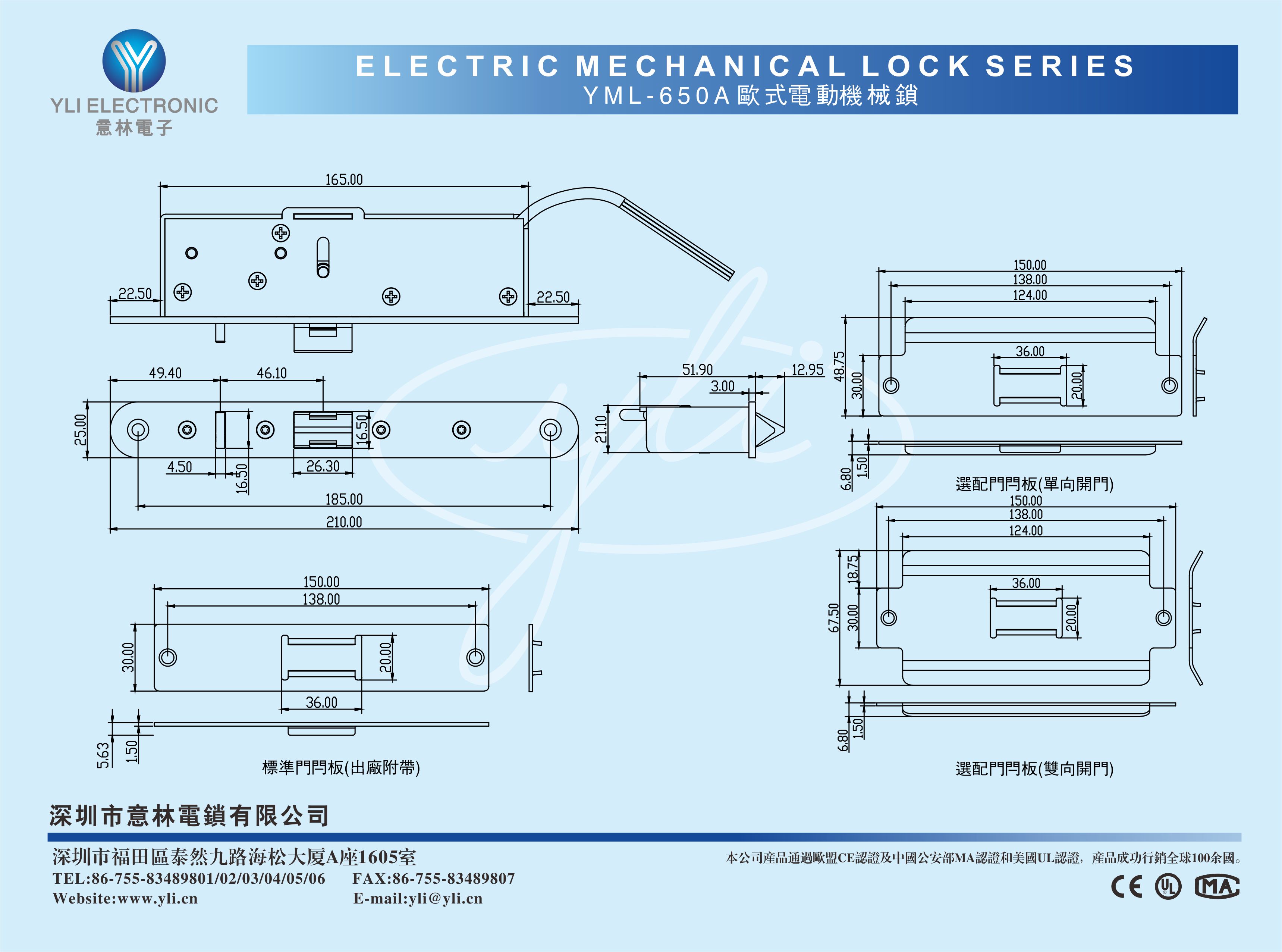 標準門閂板:150長x30寬x1.5高(mm) 單向開門閂板:150長x48.7寬x1.5高(mm);雙向開門閂板:150長x67.5寬x1.5高(mm) |